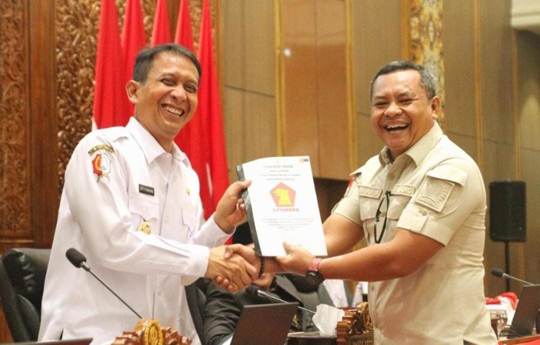 Kemudian, mempertimbangkan seluruh hasil pembahasan dan catatan yang telah disampaikan, Fraksi Partai Gerindra DPRD Kabupaten Bojonegoro menyatakan menerima dan menyetujui Rancangan Peraturan Daerah Kabupaten Bojonegoro Tahun 2025 tentang Perubahan Ketiga atas Peraturan Daerah Nomor 13 Tahun 2016 untuk disahkan menjadi Peraturan Daerah Kabupaten Bojonegoro.