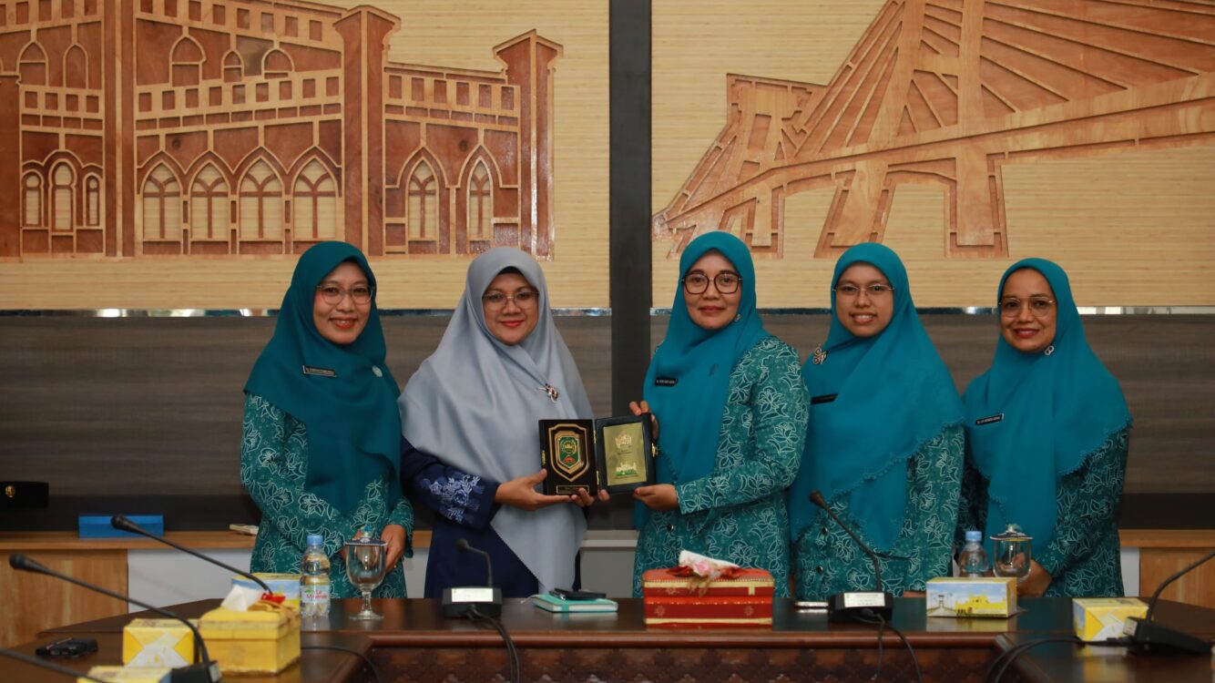 Bupati Siak Afni Zulkifli bersama Ketua TP PKK Kabupaten Siak Siti Sarifah menyambut hangat kunjungan Ketua TP PKK Kabupaten Lima Puluh Kota, Ny. Asra Yanti Safni, beserta rombongan.