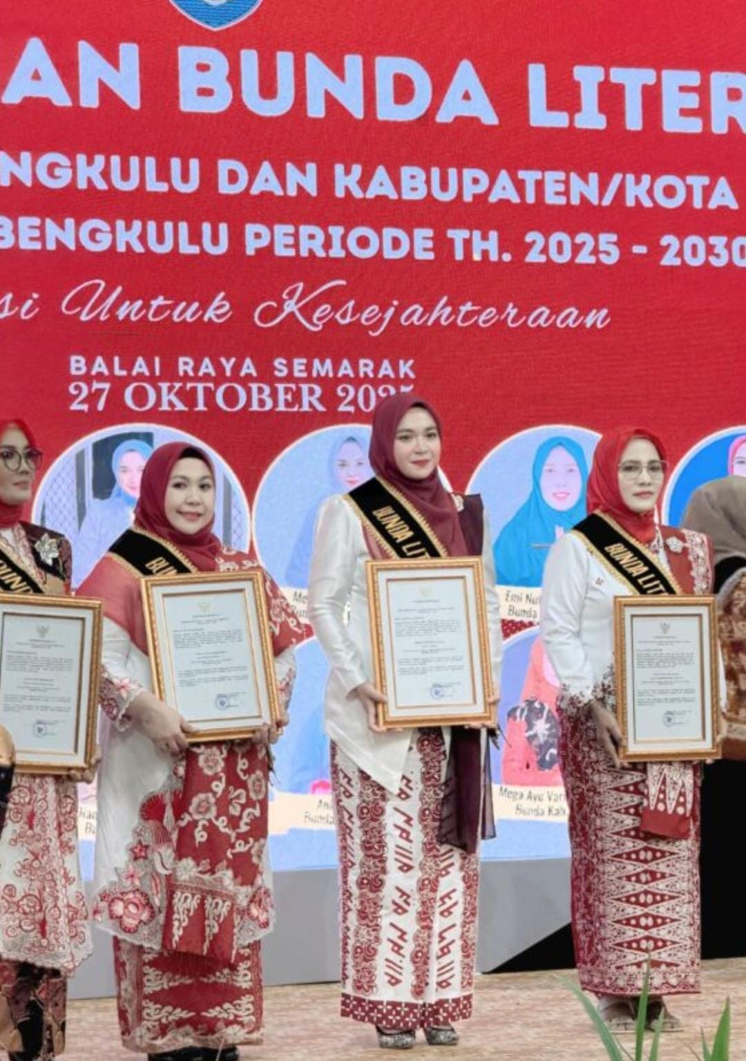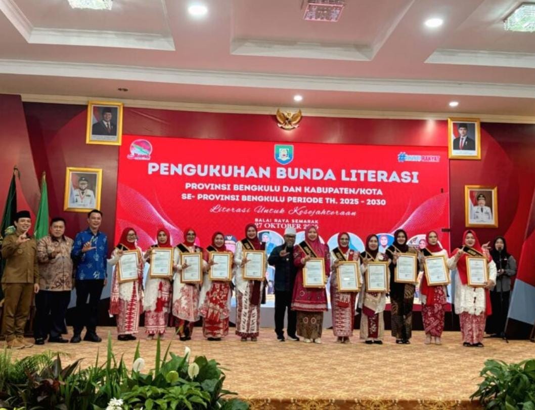 REJANG LEBONG (BENGKULU), SUARAPANCASILA.ID —Ny. Intan Larasita Fikri, resmi dilantik sebagai Bunda Literasi Rejang Lebong oleh GubernurBengkulu H. Helmi Hasan, S.E., bersamaan dengan pelantikan Hj. Khairunnisah Helmi Hasan, S.E., M.M. sebagai Bunda LiterasiProvinsi Bengkulu, serta para Bunda Literasi kabupaten/kota se-Provinsi Bengkulu.