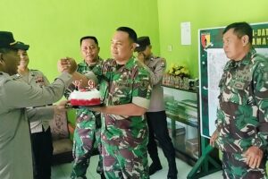 MALANG ( JATIM ) SUARAPANCASILA.ID – Kapolsek Sumbermanjing Wetan (Sumawe), IPTU Cahyo Wiyono, S.E., bersama anggota bersama-sama mendatangi Koramil 0818/16 Sumawe guna memberikan ucapan selamat dan memberikan bingkisan pada Hari Ulang Tahun (HUT) TNI ke 79 yang bertemakan “TNI Modern Bersama Rakyat Siap Mengawal Suksesi Kepemimpinan Nasional untuk Indonesia Maju”. Sabtu (05/10/2024) pukul 11.00 WIB.