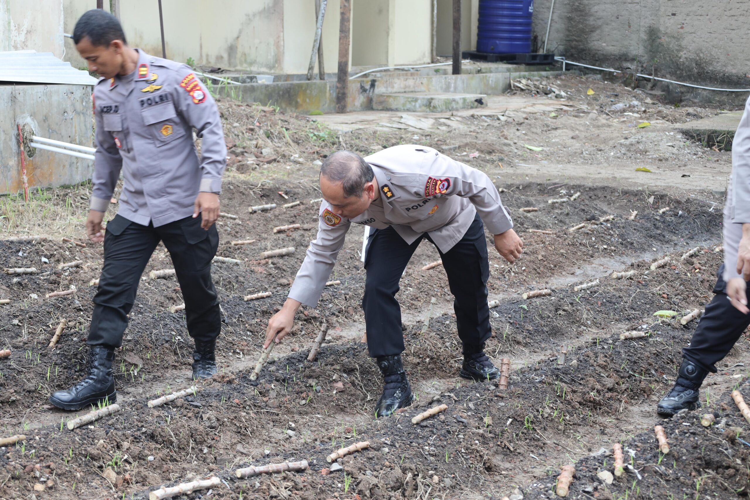 Biro SDM Polda Banten lepas 10.000 benih ikan dan tanam 1000 pohon singkong dalam rangka memperingati hari Bhayangkara ke-78 dan untuk menjaga ketahanan pangan bertempat di taman Polda Banten pada Kamis (27/06)