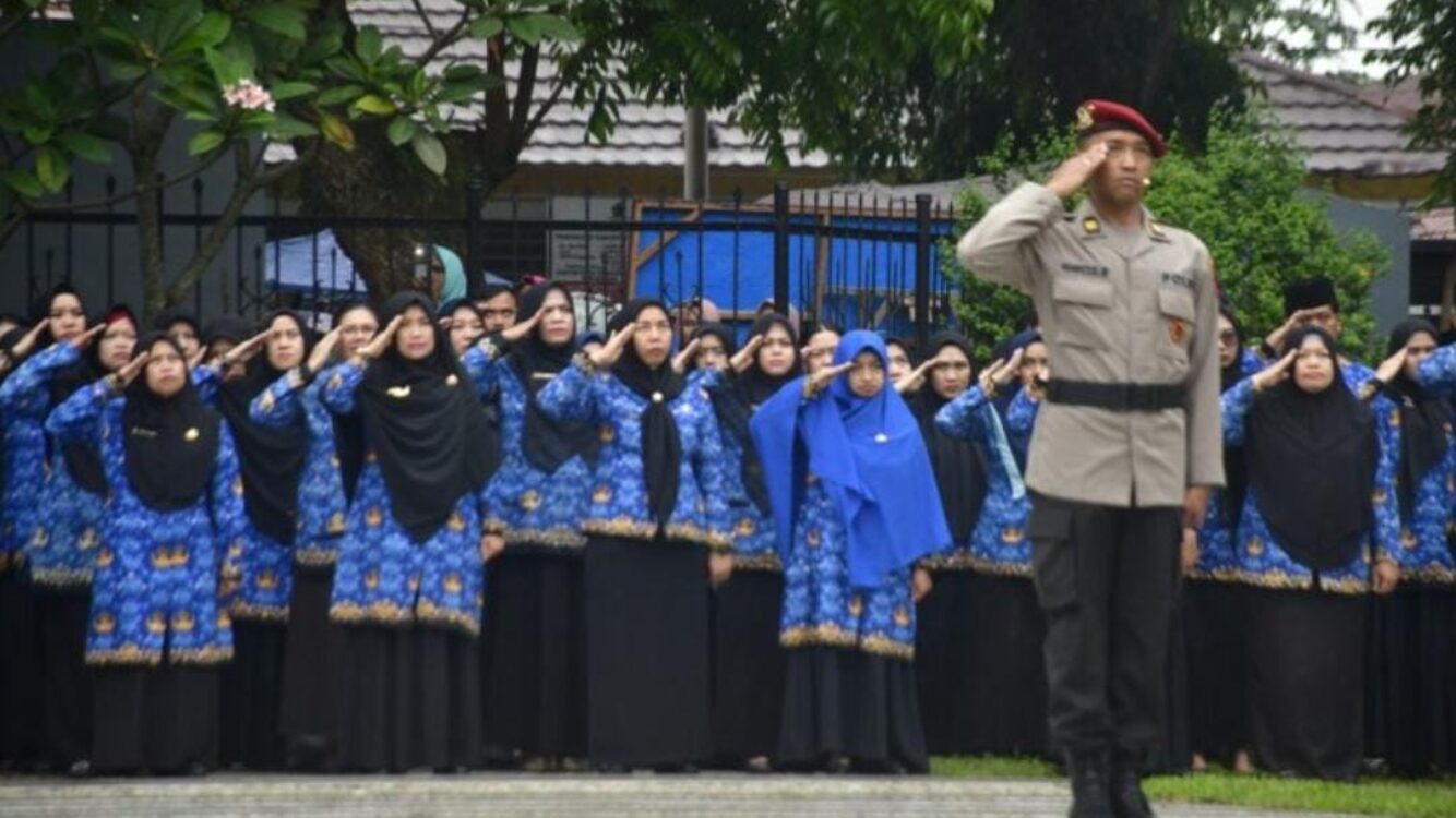 Turut hadir Ketua TP PKK Ny. Intan Larasita Fikri, Ketua GOW dr. Melka Novera Sari, SpN, para kepala OPD, pejabat eselon III, sertapasukan TNI, Polri, Damkar, ASN, Pramuka, mahasiswa, dan pelajar.