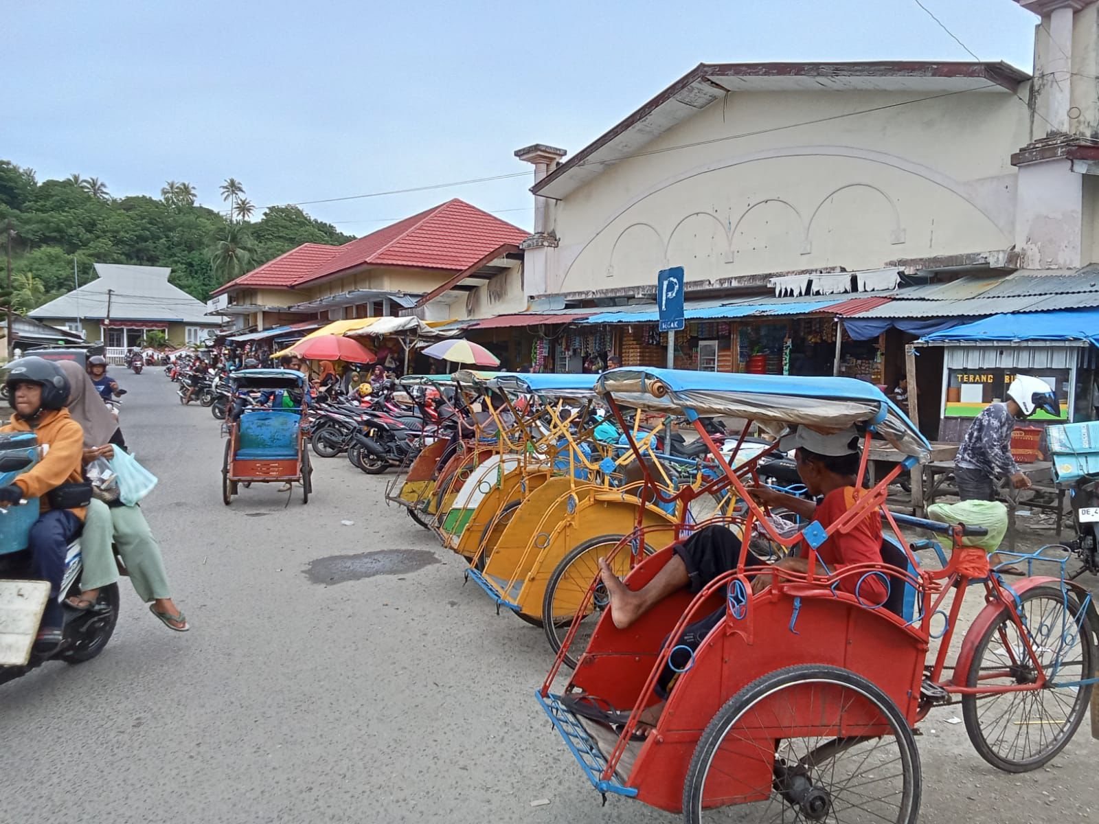 Kehadiran becak sebagai moda transportasi sederhana namun efektif, menjadi pilihan utama bagi banyak pengunjung pasar.