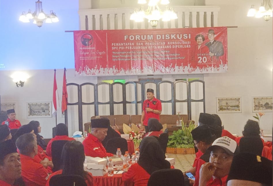 KOTA MALANG,SUARAPANCASILA.ID – Dalam rangka pemantapan dan penguatan konsolidasi struktural Partai pasca Kongres VI PDI Perjuangan Tahun 2025, serta persiapan pelaksanaan agenda Konferensi Daerah (Konferda) dan Konferensi Cabang (Konfercab), Dewan Pimpinan Cabang (DPC) Partai Demokrasi Indonesia (PDI) Perjuangan Kota Malang menyelenggarakan Forum Diskusi Pemantapan Dan Penguatan Konsolidasi Internal Diperluas, berlangsung di Lodji Coffee Lantai 1, Hotel Pelangi, Kayutangan Heritage, Kota Malang, pada Minggu (09/11/2025).