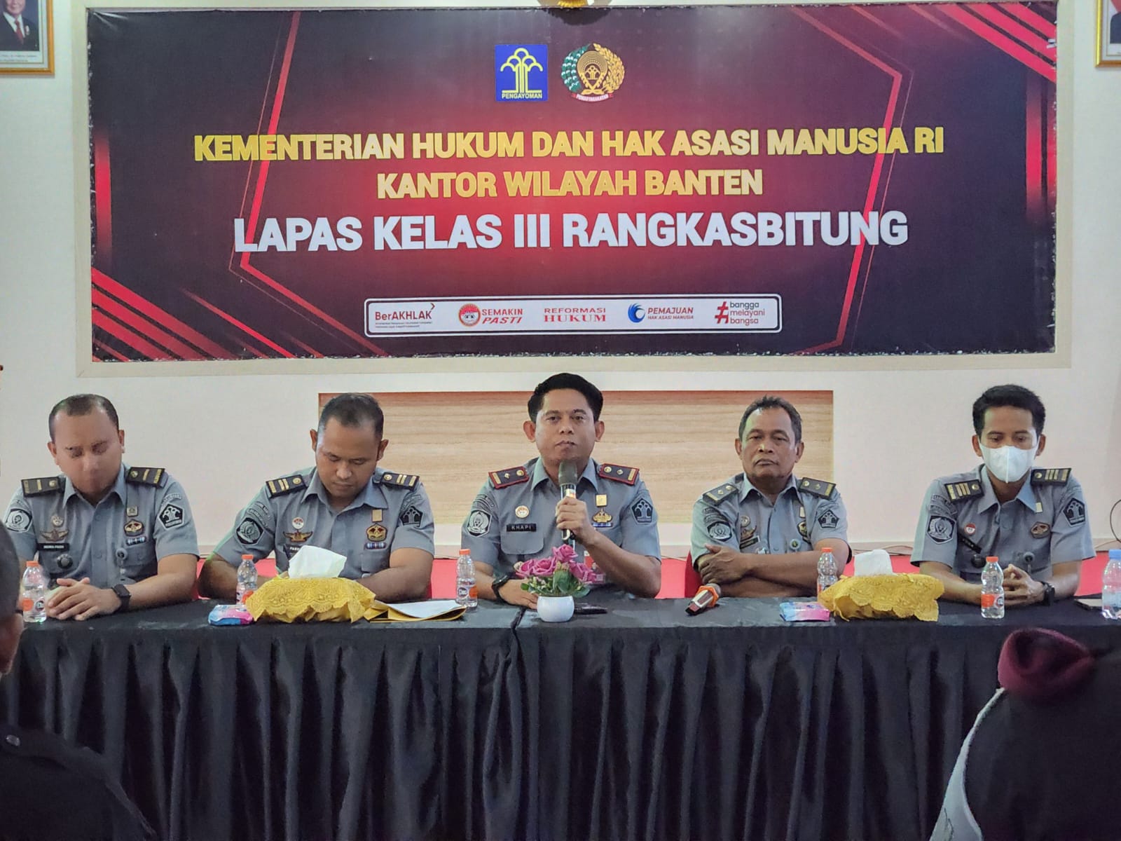LEBAK,(BANTEN)-SUARAPANCASILA.ID-Kepala Lembaga Pemasyarakatan (Kalapas) Kelas III Rangkasbitung, Muhamad Khapi, didampingi oleh pejabat struktural termasuk Kepala Subseksi Keamanan dan Ketertiban (Kasubsi Kamtib), Adi Santo, melaksanakan kegiatan penguatan tugas dan fungsi kepada Regu Jaga Lapas. Kegiatan ini bertujuan untuk meningkatkan kewaspadaan menjelang Pemilihan Umum (Pemilu) 2024 dan perayaan Natal serta Tahun Baru (Nataru), sekaligus menekankan arahan penting dari Menteri Hukum dan HAM terkait kedisiplinan dan profesionalisme petugas pemasyarakatan. (25/11)