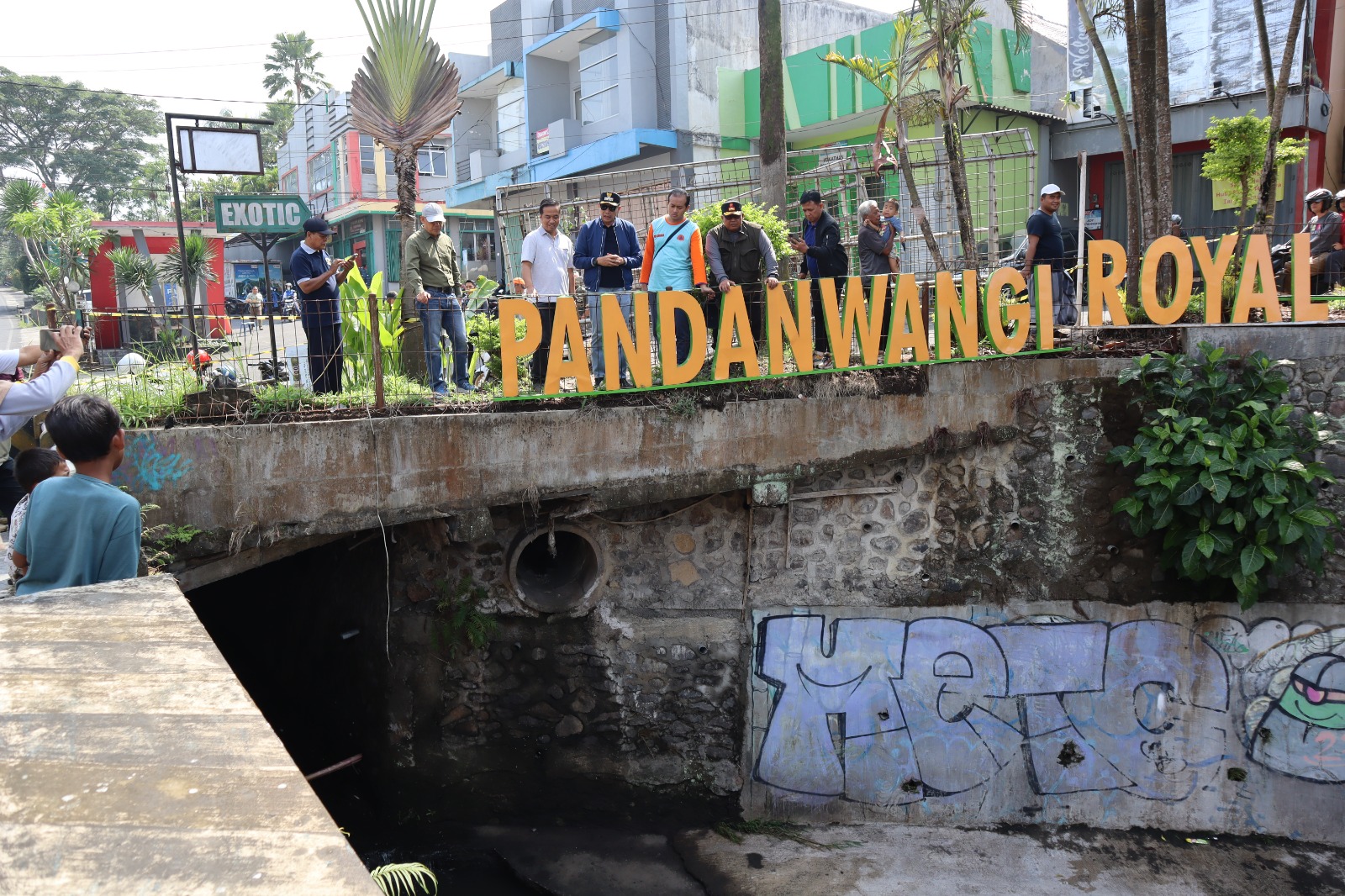 Didampingi Kadis PUPRPKP, Kasatpol PP, Kadishub, Kadinkes, Camat Blimbing dan Lurah Pandanwangi, Walikota Wahyu melihat kondisi jembatan tersebut.