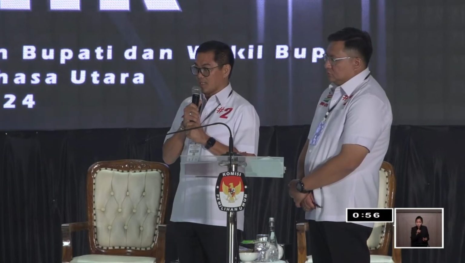 MINAHASA UTARA (SULUT) SUARAPANCASILA.ID-JGKWL tampil percaya diri dalam debat publik pertama pasangan calon bupati dan wakil bupati minut tahun 2024, Rabu (16/10/2024).