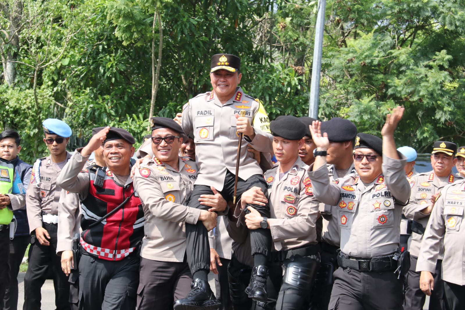 “Tanamkan kebanggaan dalam diri anda semua bahwa memilih pemimpin di republik ini perlu ruang agar masyarakat tenang jaga kesehatan serta Semangat selalu dalam melaksanakan tugas selaku Abdi Bhayangkara”ujar Komjen Fadil di hadapan Puluhan ribu personel Polda Sumsel dan jajarannya