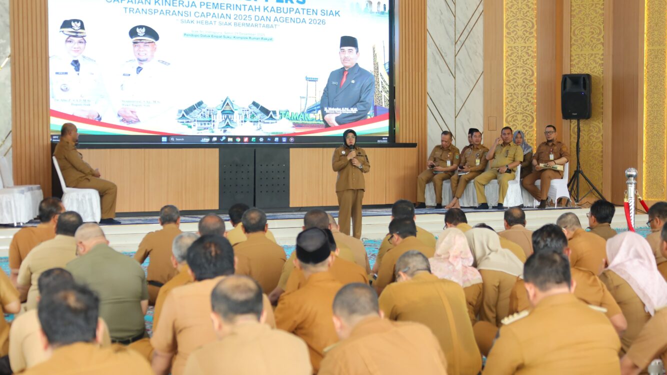 SIAK (RIAU), SUARAPANCASILA.ID – Memasuki tujuh bulan masa kepemimpinannya sebagai Bupati Siak Dr.Afni Zulkifli bersama Wakil Bupati Syamsurizal menutup tahun 2025, dengan mengelar konferensi pers berkaitan capaian kinerja Pemerintah, transparansi capaian tahun 2025 dan agenda tahun 2026.
