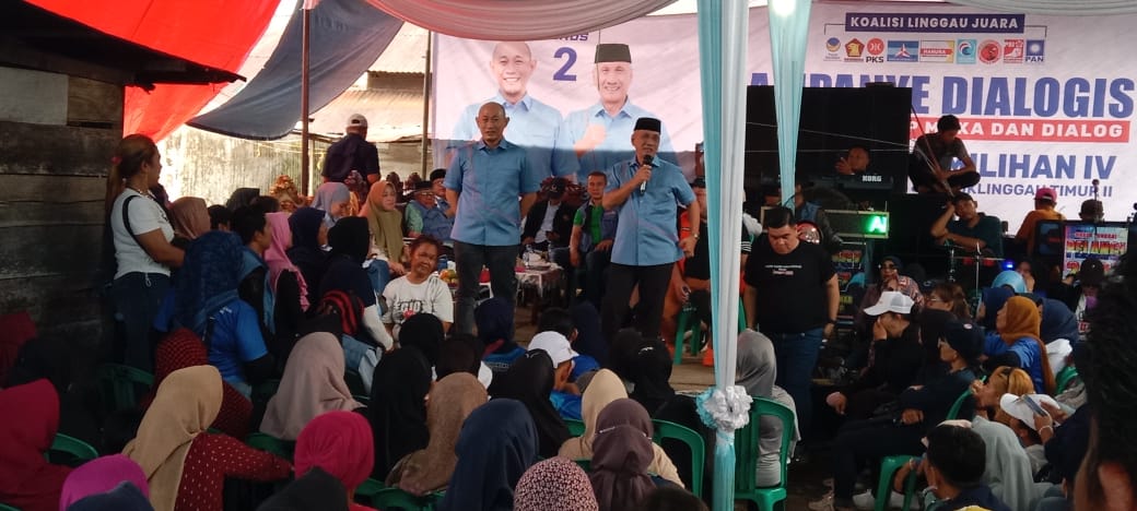 LUBUKLINGGAU (SUMSEL), SUARAPANCASILA.ID – Kampanye dialogis calon Walikota dan Wakil Walikota H. Rachmat Hidayat (Yoppy Karim) dan H. Rustam Effendi di Kelurahan Linggau Ilir Kecamatan Lubuklinggau Barat II, semakin melekat di hati terutama emak-emak atas visi misi paslon nomor 2 yang dikenal ‘Botak Peci, Selalu Dihati’. Senin (14/10/2024)