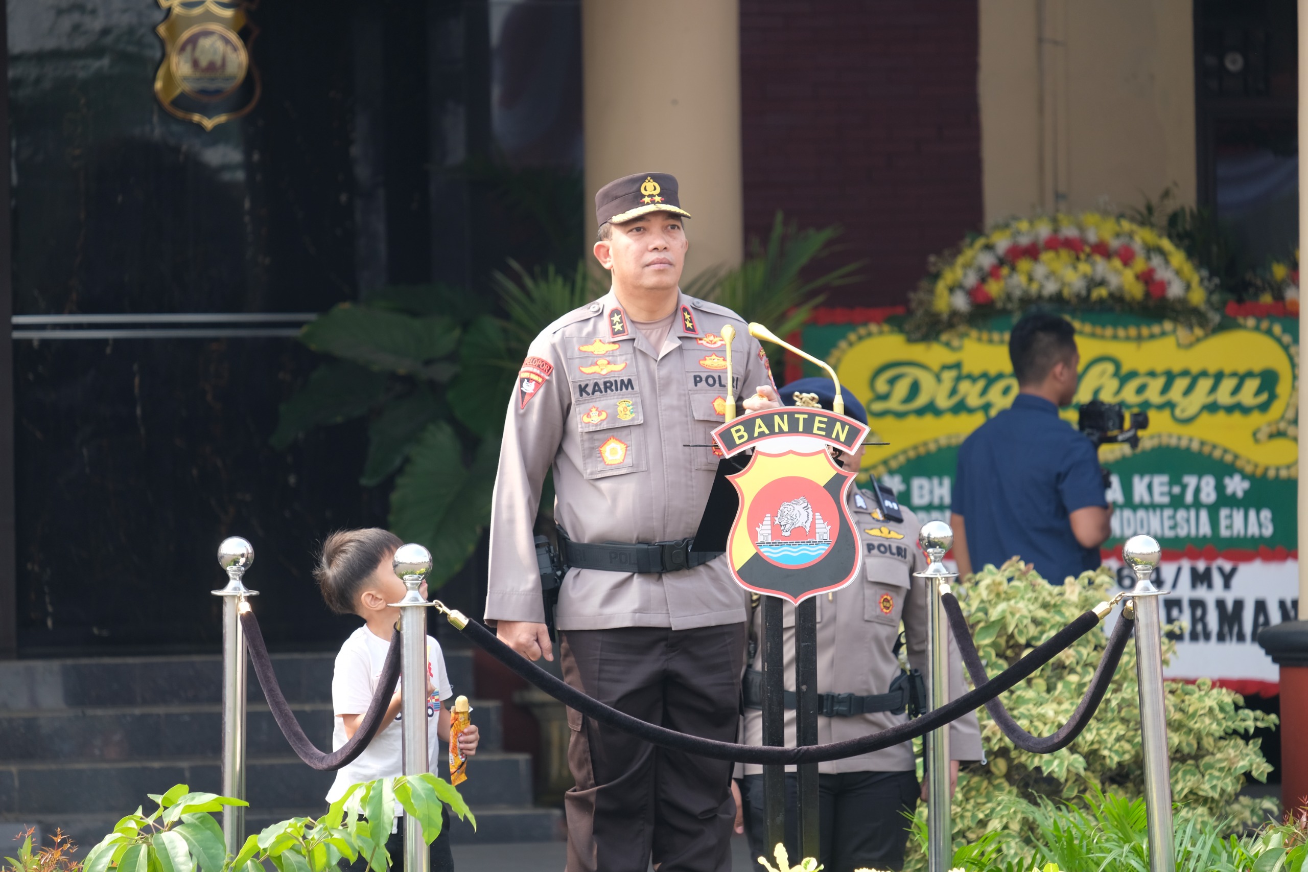Kapolda Banten Irjen Pol Abdul Karim memimpin langsung Upacara Laporan Kenaikan Pangkat Polri Polda Banten Periode 1 Juli 2024, bertempat di Lapangan Merah Polda Banten pada Selasa (02/06).