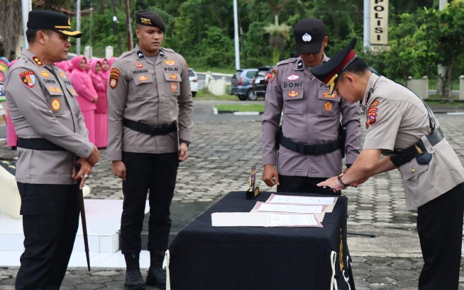 SAWAHLUNTO-(SUMBAR)-SUARA PANCASILA.ID-Kapolres Sawahlunto, Akbp Simon Yana Putra, S.I.K., M.H., memimpin upacara pelantikan Waka Polres Sawahlunto dan serah terima jabatan Kabag Ops dan Kasat Reserse Narkoba Polres Sawahlunto pada Senin 09/03/2026 di Halaman Apel Mapolres Sawahlunto. Upacara ini merupakan bagian dari agenda rutin Polri untuk penyegaran organisasi dan peningkatan kinerja pelayanan masyarakat.