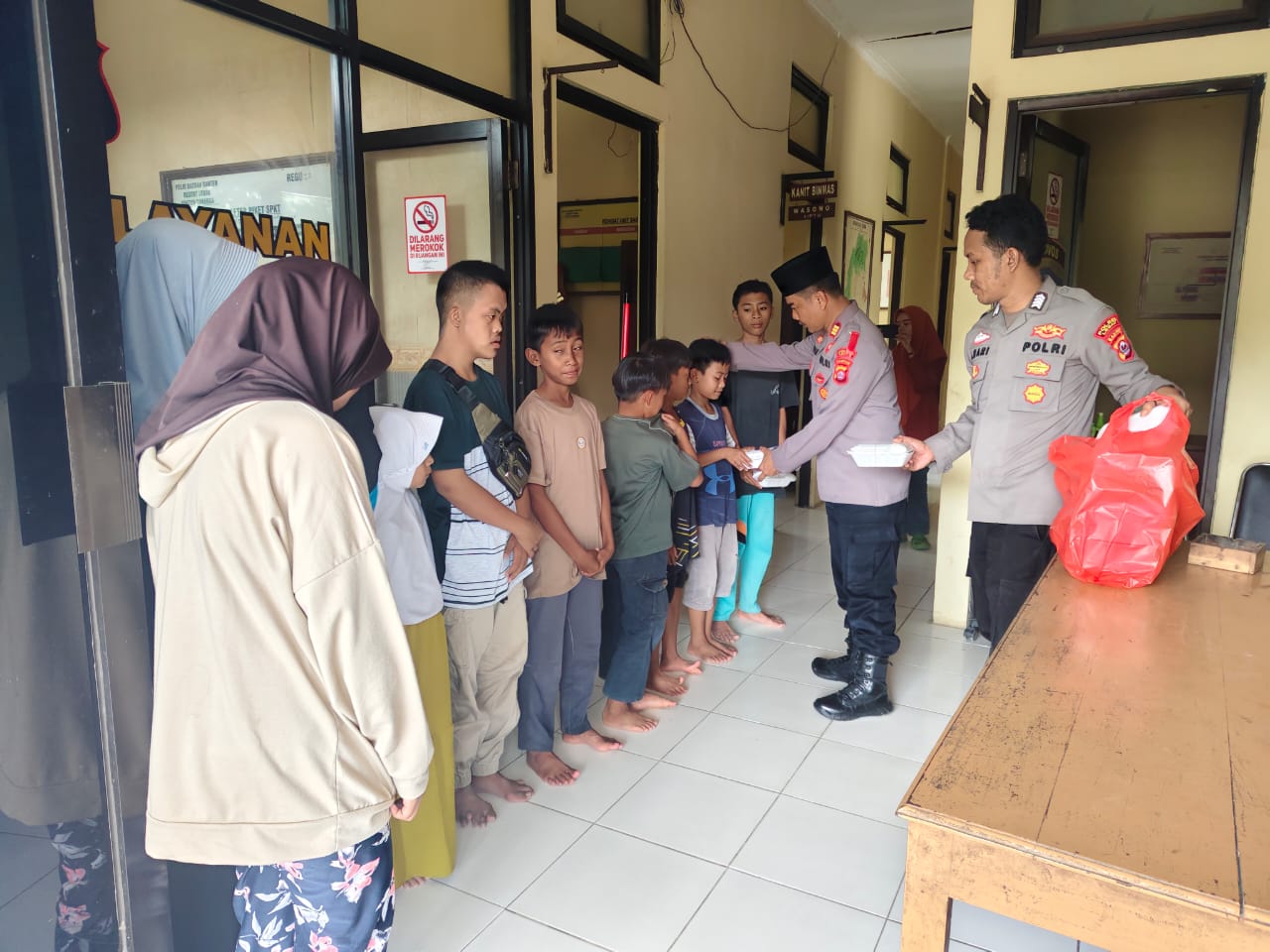 Bertempat di Mako Polsek Cimarga, santunan langsung diberikan kepada 15 anak anak Yatim Piatu oleh Kapolsek Cimarga Polres Lebak AKP Pipih Iwan Hermansyah, SH didampingi oleh anggota Polsek Cimarga