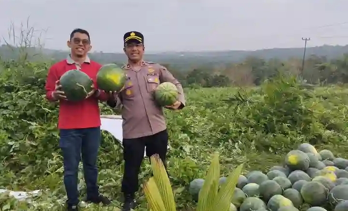 PERAWANG (RIAU) – SUARAPANCASILA.ID- Kapolsek Tualang, Kompol Teguh Wiyono, S.H., M.H., melaksanakan kegiatan panen buah semangka bersama Penghulu Kampung Perawang Barat yang merupakan Program Badan Usaha Kampung Perwang Barat Kecamatan Tualang, Kabupaten Siak.