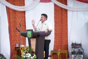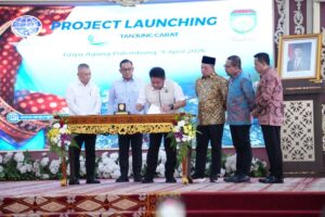 BANYUASIN (SUMSEL), SUARA PANCASILA.ID- Plt. Kepala Dinas Komunikasi, Informatika, Statistik dan Persandian Kabupaten Banyuasin, Hj. Ida Bahagia, S.H., M.M., mendampingi Bupati Banyuasin, Dr. H. Askolani, S.H., M.H., dalam kegiatan Project Launching Pelabuhan Internasional Tanjung Carat Banyuasin yang digelar di Griya Agung Palembang, Kamis (9/4).