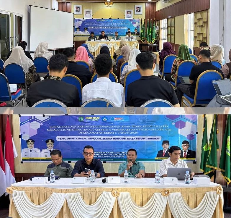 MUSI BANYUASIN, SUARA PANCASILA.ID – Camat Sekayu yang diwakili oleh Sekretaris Kecamatan Sekayu, Bapak Lendy Adiansyah, S.STP, membuka secara resmi kegiatan Sosialisasi dan Aksi Nyata Penanganan Anak Tidak Sekolah (ATS) melalui verifikasi dan validasi data ATS di Kecamatan Sekayu Tahun 2026 yang dilaksanakan di Ruang Aula Kantor Camat Sekayu.