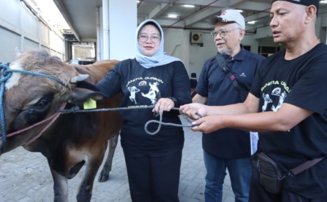 Dalam rangka merayakan Iduladha tahun ini, Kepala Dinas Komunikasi dan Informatika Provinsi Jawa Timur (Diskominfo Jatim), Sherlita Ratna Dewi Agustin, turut aktif dalam kegiatan sosial dengan menyerahkan hewan kurban kepada Panitia Idul Kurban Masjid Al Qomar.Selasa.(18/06/2024)
