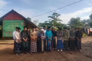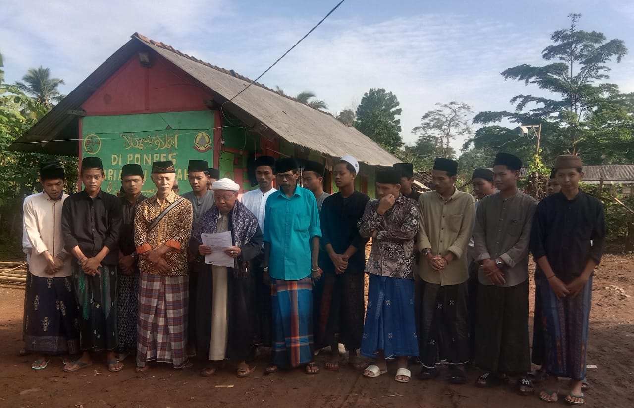 Kiyai Juhri, Pimpinan Pondok Pesantren Far’iatun Aliyah, bersama santri dan santriwati di Kampung Ciwangun, Desa Sukajadi, Kecamatan Cibaliung, menyampaikan pernyataan sikap tegas.
