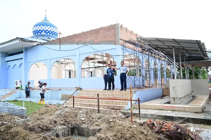 PEKANBARU (RIAU), SUARAPANCASILA.ID -Komandan Pangkalan TNI Angkatan Udara Roesmin Nurjadin Marsma TNI Feri Yunaldi, S.E., M.Han, didampingi staf Fasint pagi ini Senin (13/1/2025) meninjau langsung progres renovasi Masjid Amrullah yang terletak di kompleks Lanud Roesmin Nurjadin. Peninjauan ini dilakukan untuk memastikan kualitas pengerjaan serta kesesuaian dengan rencana yang telah ditetapkan.