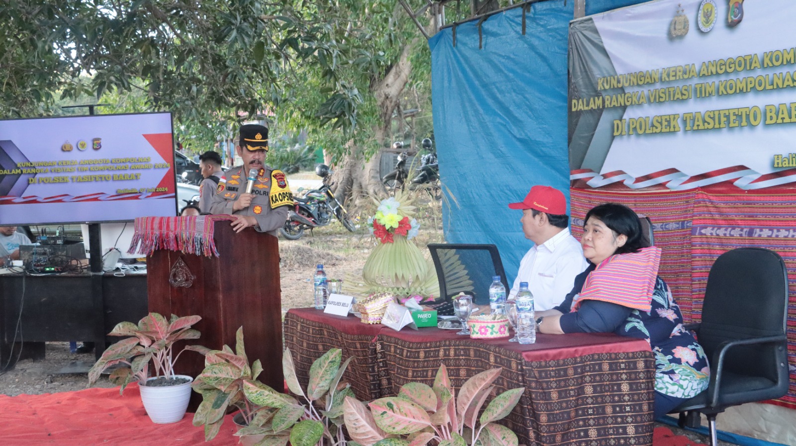 Tim Kompolnas Awards 2024 yang dipimpin oleh Anggota Kompolnas Mohammad Dawam, S.H.I., dan Poengky Indarti, S.H., LL.M, dengan didampingi Yousi Anggi Saragih, S.Sos dari Sekretariat Kompolnas dan Auditor Itwasda Polda NTT, Kombes Pol. Achmad Muzayin mengunjungi Polsek Tasifeto Barat, Kabupaten Belu dalam rangka visitasi di Mapolsek yang juga dihadiri para Tokoh Agama, Tokoh Masyarakat, Danramil, Forkopimcam dan LVRI pada Minggu, 07/07/2024.