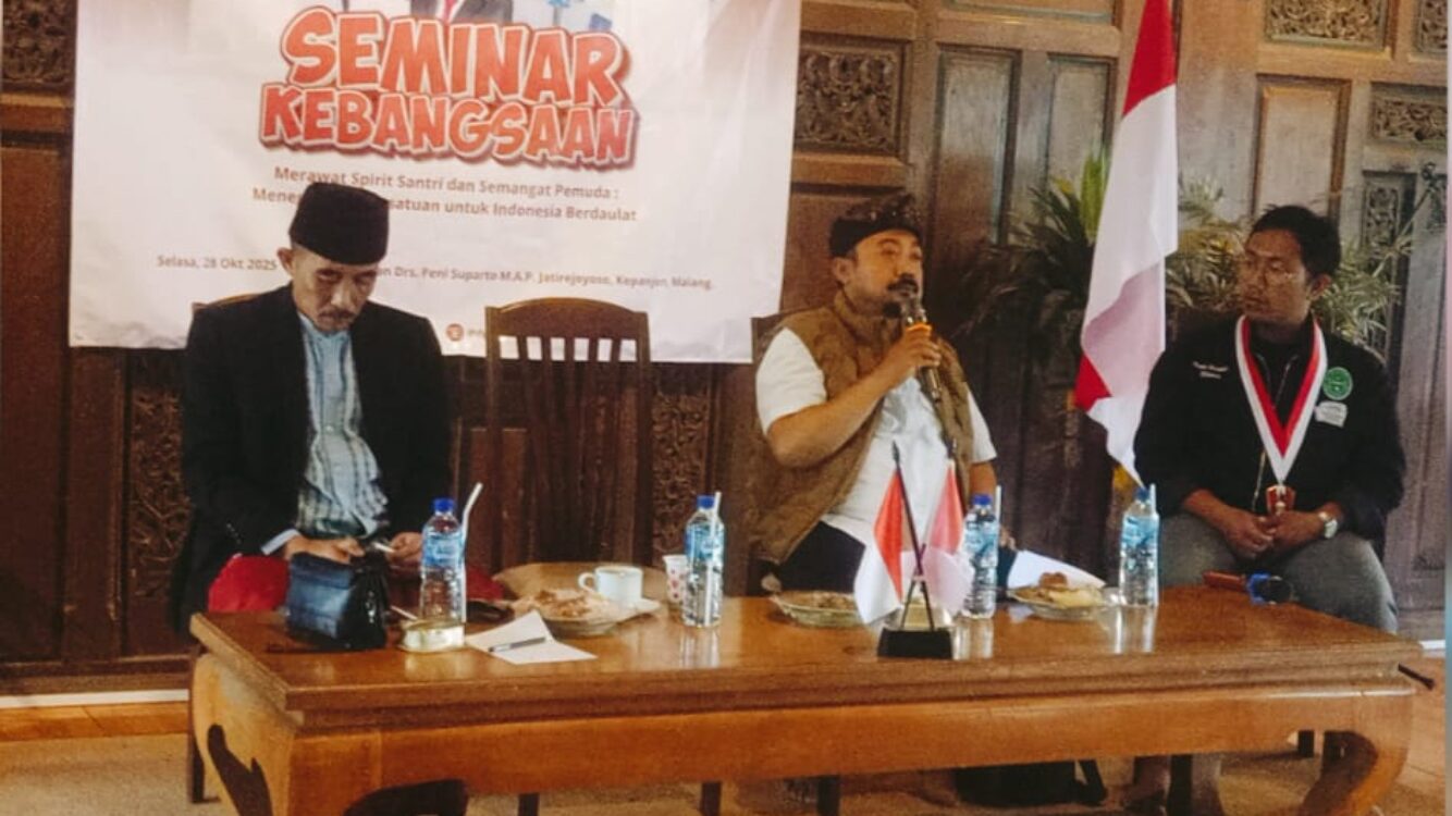 KABUPATEN MALANG, SUARAPANCASILA.ID – Peringati Hari Sumpah Pemuda, DPC GMNI Kabupaten Malang menggelar seminar kebangsaan dengan tema “Merawat Spirit Santri dan Semangat Pemuda: Meneguhkan Persatuan untuk Indonesia Berdaulat”, bertempat di aula kediaman Drs.Peni Suparto, M.A.P, Jatirejoyoso, Kabupaten Malang, Selasa, (28/10/2025).