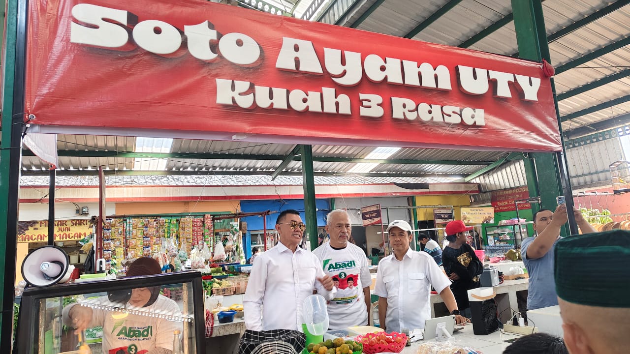 Seperti biasa dalam kunjungannya, Paslon Abadi tersebut menyapa para pedagang juga meluangkan waktunya untuk memenuhi permintaan foto bersama.