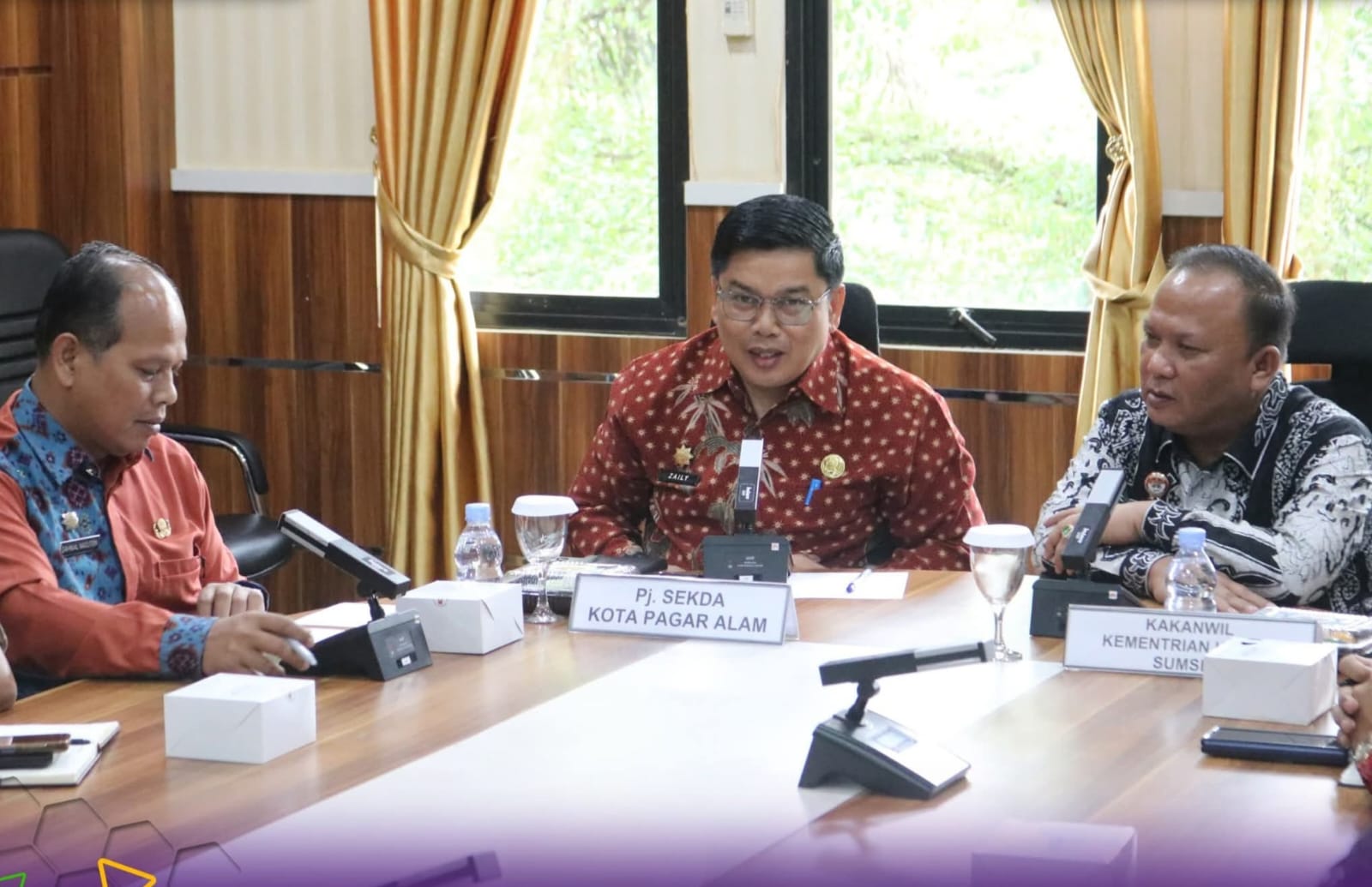 PAGAR ALAM (SUMSEL) SUARAPANCASILA.ID – Pj Sekretaris Daerah (Sekda) Kota Pagar Alam Zaily Oktosab Fitri Abidin, menerima Kunjungan Kerja (Kunker) dari Kepala Kantor Wilayah (Kakanwil) Kementerian Hukum (Kemenkum) Sumatera Selatan (Sumsel), bertempat di Ruang Rapat Besemah Tige (III), Kantor Wali Kota Pagar Alam, Kamis (02/10/2025).