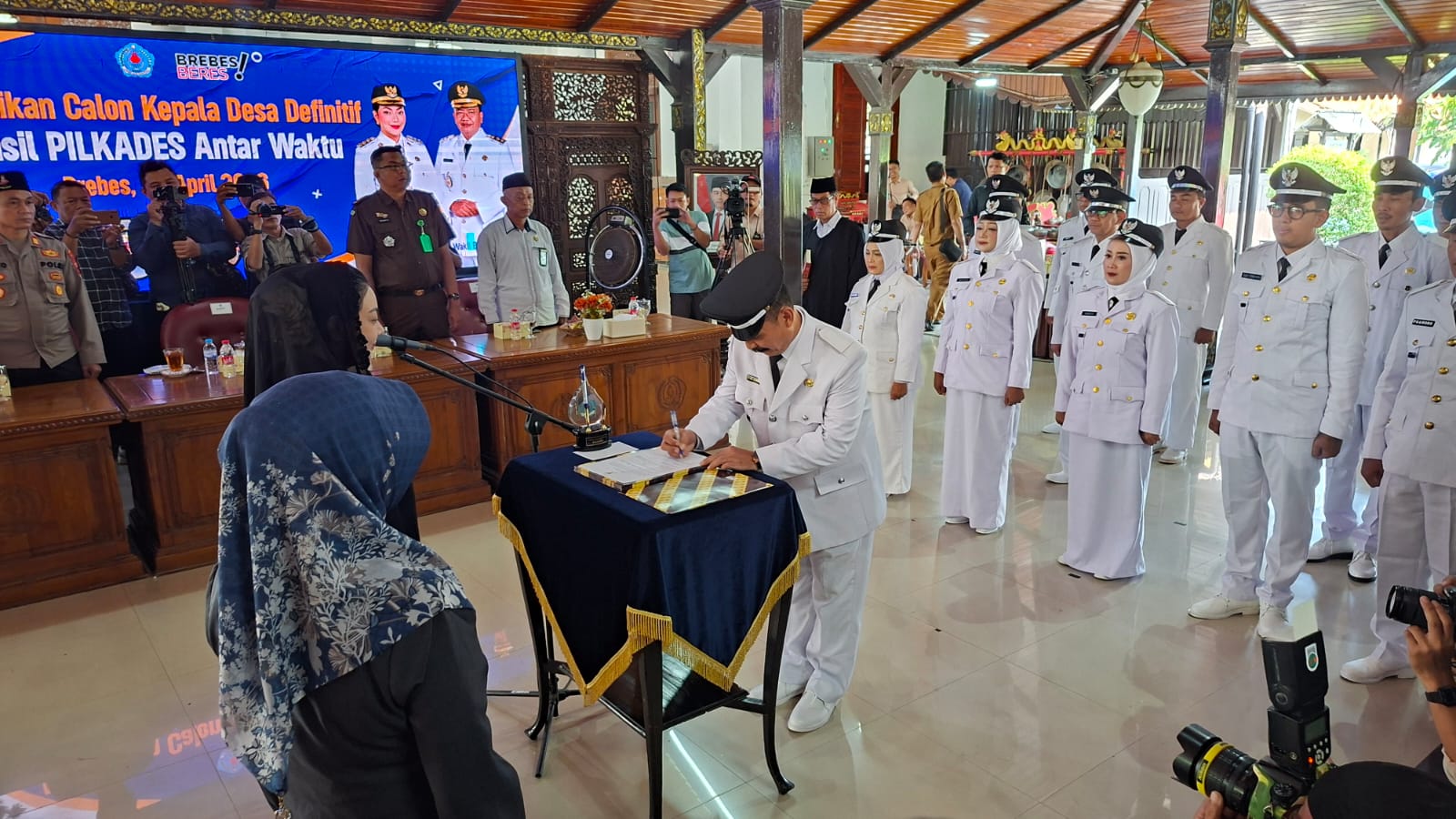 BREBES (JATENG), SUARAPANCASILA.ID – Bupati melantik 14 Kepala Desa definitif hasil Pemilihan Kepala Desa Antar Waktu (PAW) Tahun 2026 di Pendopo Kabupaten Brebes, Senin (20/4/2026).