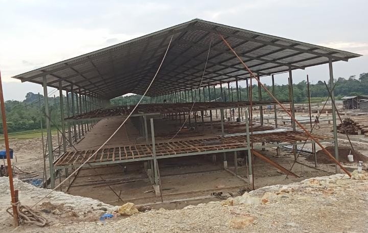 Namun pada Kamis (25/2/2026), aktivitas pembangunan kembali terlihat berlangsung. Sejumlah pekerja tampak melanjutkan pembangunan kandang ayam meski status legalitasnya belum jelas.