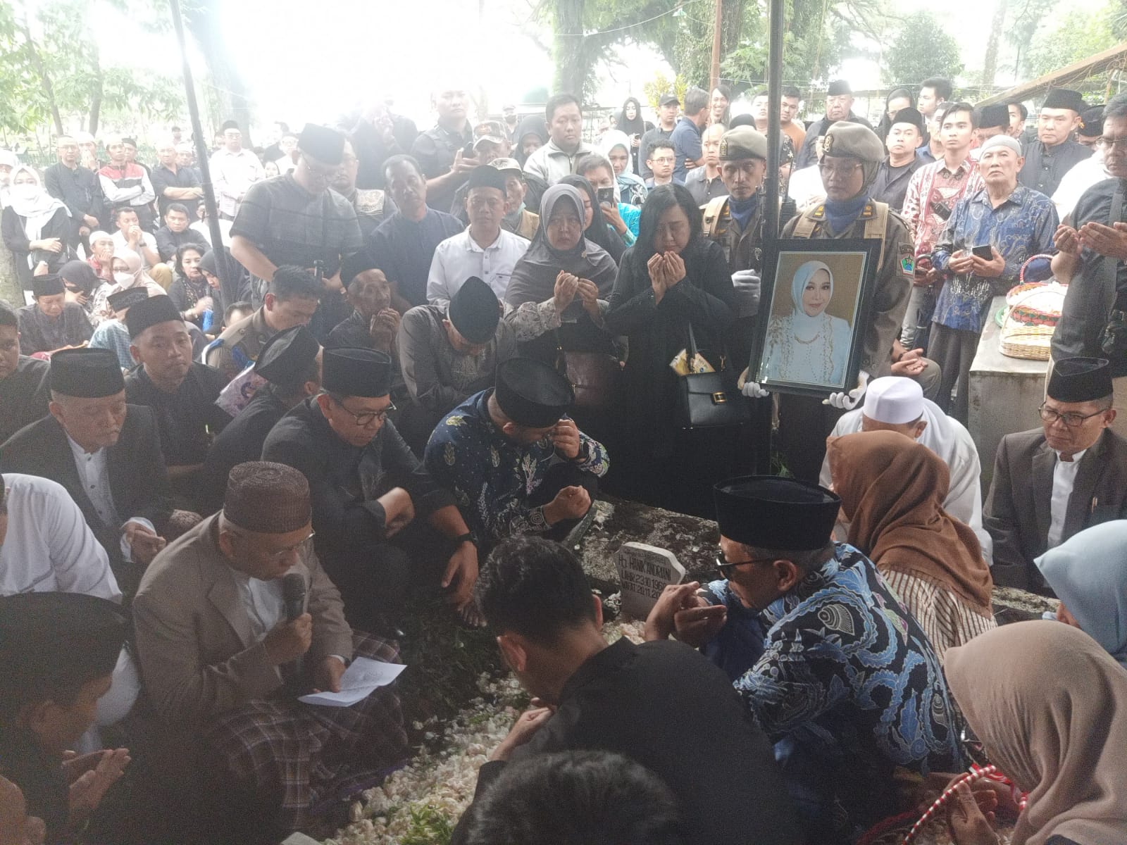 Tampak beberapa pejabat tinggi daerah, termasuk perwakilan Forkopimda dan tokoh agama dari berbagai latar belakang, turut memberikan penghormatan terakhir, menunjukkan betapa almarhumah adalah figur yang dicintai dan dihormati semua kalangan.
