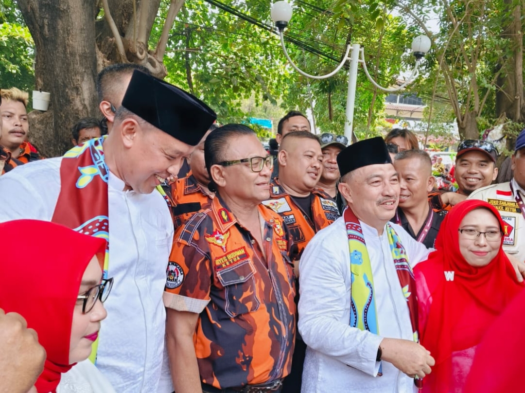 Adapun Paslon Walikota Kota Bekasi diarak dengan alunan musik dan adat kebudayaan Betawi.