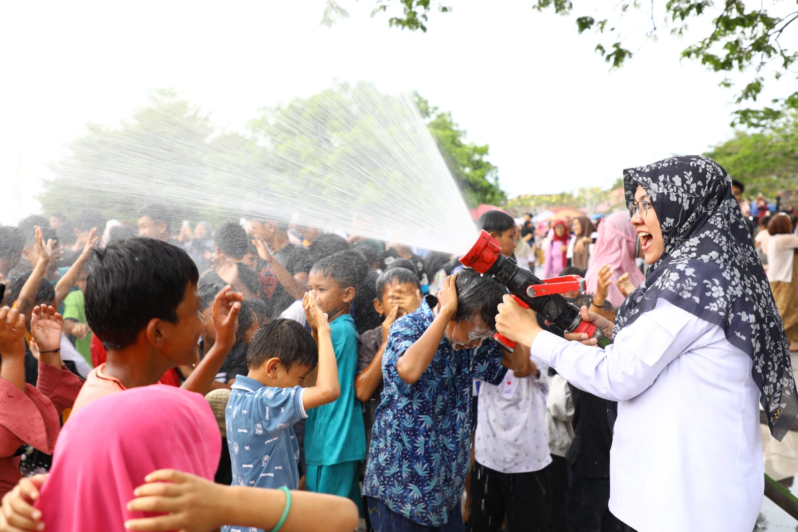 Sekitar 10 anak dimandikan simbolis air limau. Kemeriahan berlanjut saat Bupati dan Wabup berbaur bersama masyarakat mandi bersama. Meski tak turun langsung ke sungai Siak, kegiatan ini berlangsung meriah.