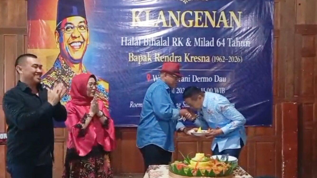 KABUPATEN MALANG (JATIM), SUARAPANCASILA,ID-Kehadiran Wali Kota Malang, Dr. Ir. Wahyu Hidayat, MM., dalam perayaan Milad ke-64 Rendra Kresna di Warung Tani Dermo Dau, Kabupaten Malang, Kamis (02/04/2026), bukan sekadar pemenuhan undangan formal. Di balik seragam birokratnya, Wahyu menyimpan memori mendalam tentang sosok Rendra Kresna yang ia sebut sebagai mentor, guru, sekaligus figur ayah yang membentuk kariernya.