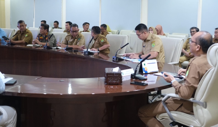 Rapat berlangsung di Ruang Rapat Serasan Sekate, Selasa (24/02/2026). Yang dihadiri oleh Kepala Perangkat Daerah Kabupaten Muba yang terkait dan pihak dari Bank Sumsel Babel.