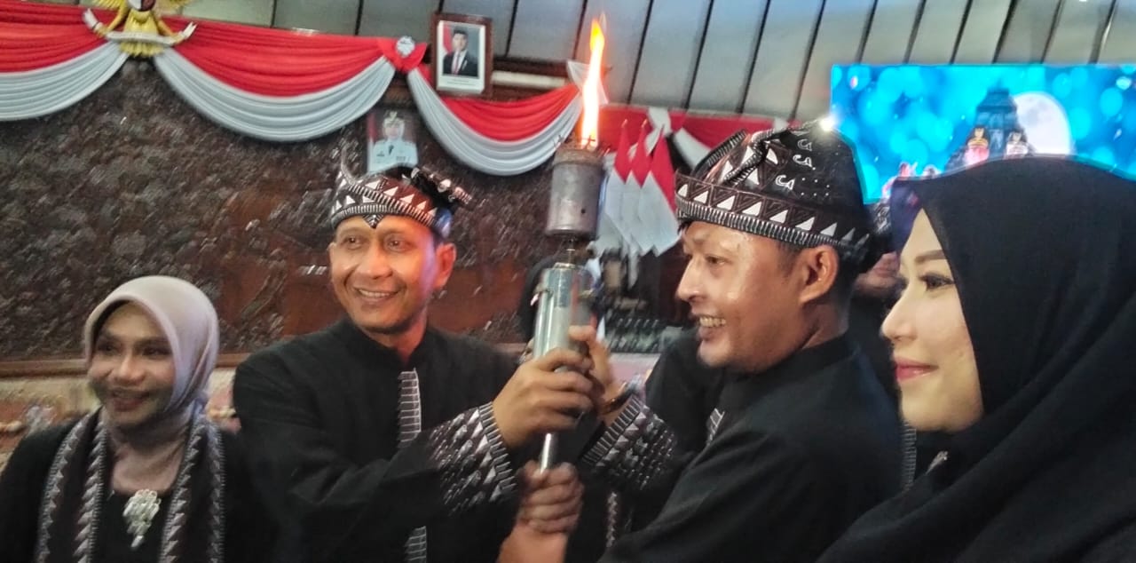 Setelah obor diantar dari Kahyangan Api ke pusat kota Bojonegoro, pada malam harinya obor diantar ke Pendapa Malawopati, Minggu (19/10/2025) malam.