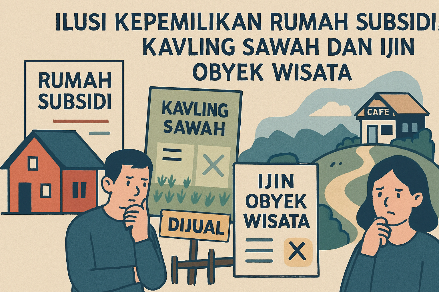 BREBES (JATENG), SUARAPANCASILA.ID – Kewaspadaan dan kehati-hatian harus selalu ditempatkan di depan ketika masyarakat dihadapkan pada tawaran rumah subsidi, kavling sawah, maupun obyek wisata di lahan hijau. Setiap brosur yang tampak meyakinkan, setiap iklan yang menjanjikan kepemilikan murah, dan setiap izin yang terlihat sah perlu diperiksa dengan teliti. Tanpa sikap waspada, warga berisiko terjebak dalam ilusi kepemilikan yang hanya memberikan dokumen rapuh tanpa kepastian hukum.