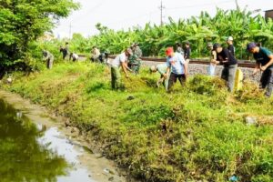 Mitigasi Bencana, Babinsa Kodim Bojonegoro Bersama Warga Sukorejo Karya Bakti Pembersihan Sungai