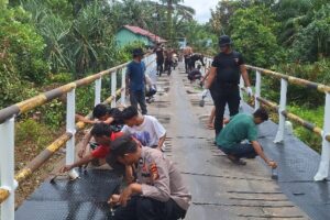 Sinergi Tanpa Batas: Personel Polsek Koto Gasib dan Warga Kompak Rampungkan Jembatan Sungai Penyengat