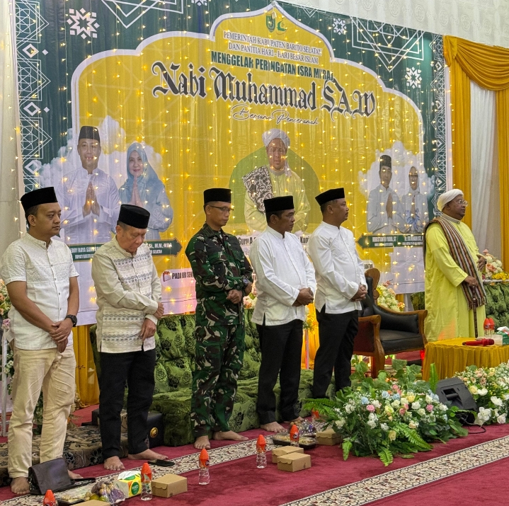 BARITO SELATAN (KALTENG) – SUARAPANCASILA.ID – Pemerintah Kabupaten Barito Selatan melalui Panitia Hari Besar Islam (PHBI) melaksanakan peringatan Isra Mi’raj Nabi Besar Muhammad SAW tahun 1447 Hijriah/2026 Masehi, di Masjid Agung Baiturrahman Buntok, Senin, 12 Januari 2026 malam bertepatan dengan 24 Rajab 1447 H.