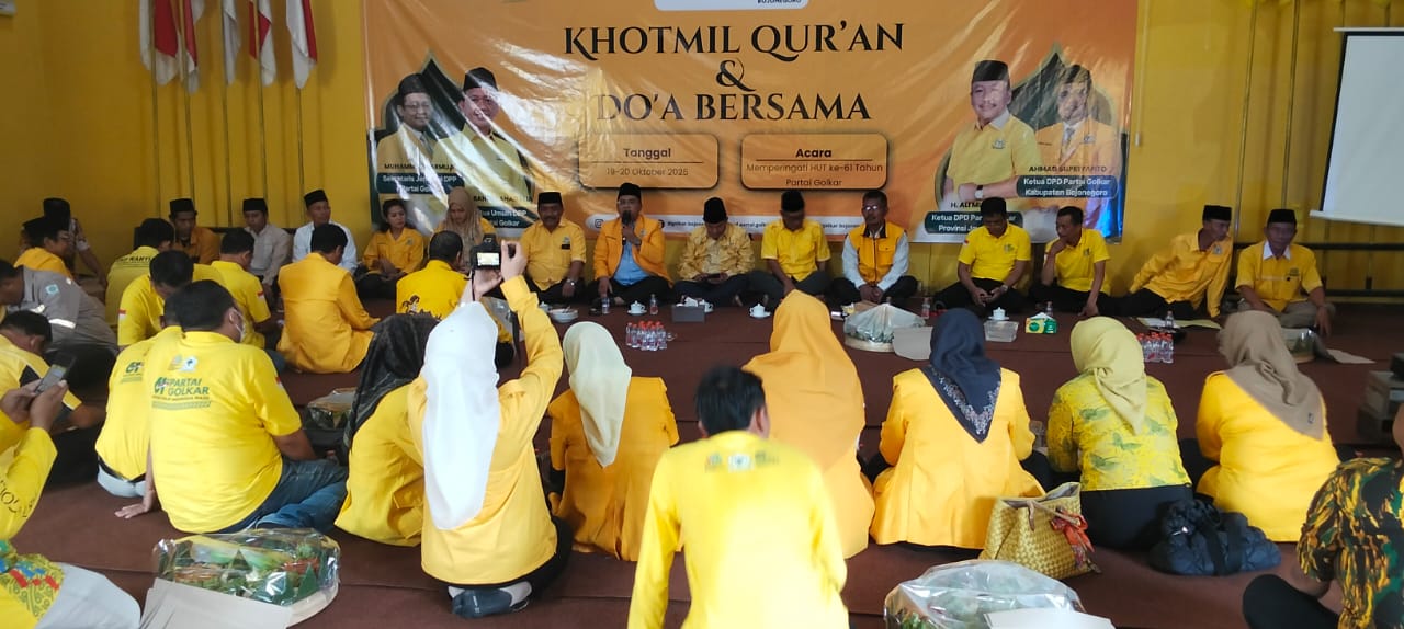 KAB BOJONEGORO (JATIM) SUARAPANCASILA.ID – Suasana hangat terasa di Kantor DPD Partai Golkar Bojonegoro, doa bersama digelar sederhana tapi penuh makna, segenap pengurus Partai Golkar dari berbagai tingkatan mengikuti doa bersama sekaligus tasyakuran. Namun kali ini, suasana terasa lebih istimewa—karena tahun 2025 menandai perjalanan 61 tahun Partai Golkar.