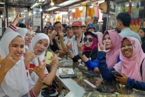 Seperti biasa dengan senyum khas, kedua Paslon nomor urut 3 itu menyapa dan menyalami satu persatu pedagang serta masyarakat, serta memenuhi permintaan untuk foto bersama.