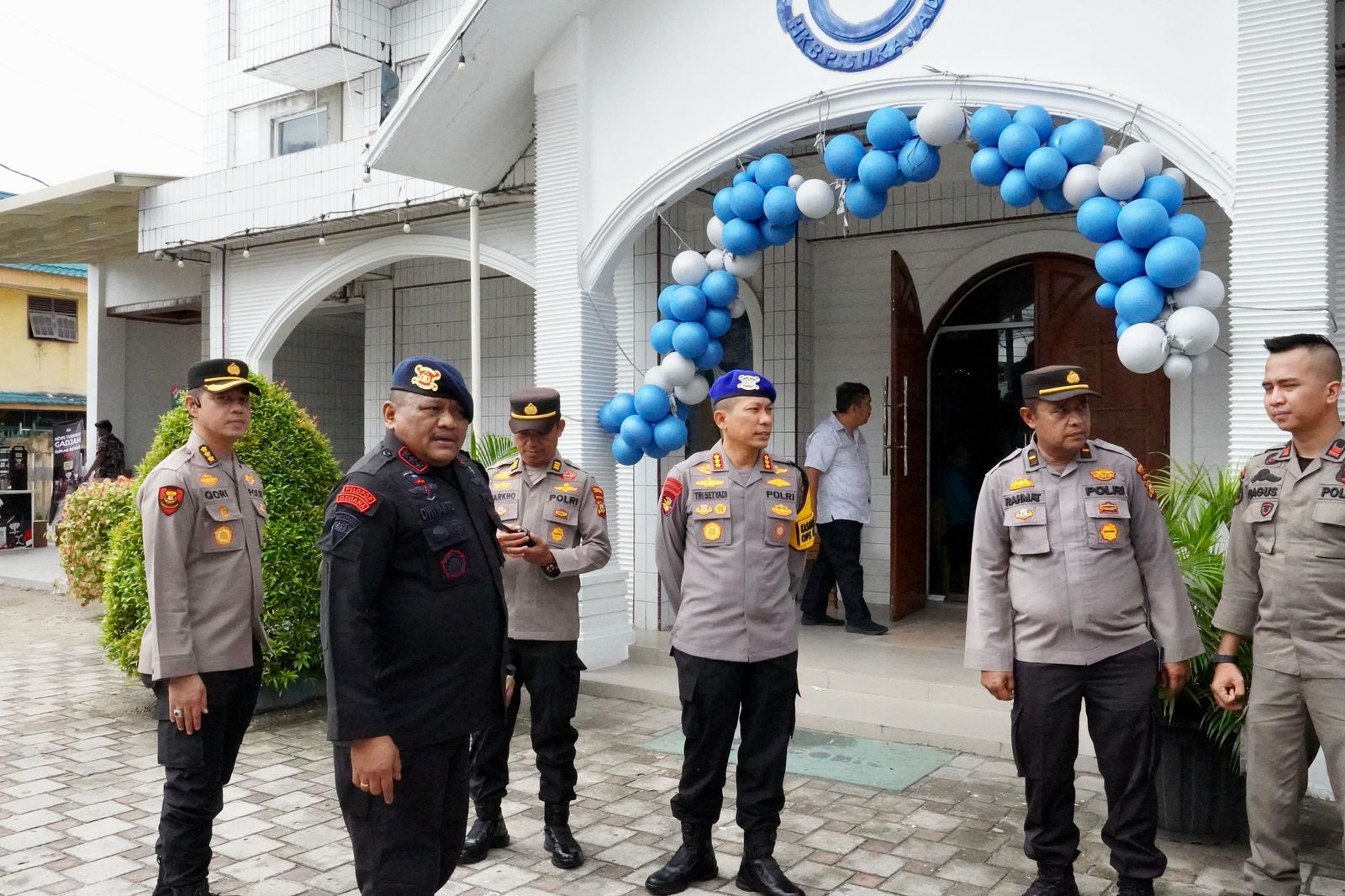 PEKANBARU (RIAU), SUARAPANCASILA.ID – Pastikan Keamanan Natal 2024 Dansat Brimob Polda Riau Kombes Pol Dwi Yanto Nugroho, S.I.K., M.Han beserta rombongan melakukan peninjauan di Gereja HKBP Sukajadi JL. KH Ahmad Dahlan. Rabu (25/12/2024).