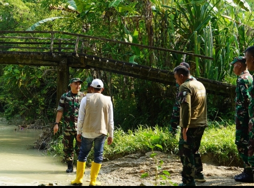 Kabupaten Bojonegoro (Jatim) Suarapancasila.id- Komandan Kodim (Dandim) 0813 Bojonegoro Letkol Inf Dedy Dwi Wijayanto, ST., meninjau lokasi rencana dilakukannya pembangunan jembatan beton antara Dusun Tawaran Desa Napis Kecamatan Tambakrejo Kabupaten Bojonegoro, menuju Desa Kenongorejo Kecamatan Beringin Kabupaten Ngawi, Sabtu (4/4/2026).