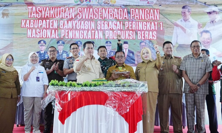 Sementara itu, Kadis DPTPH Provinsi Sumsel, Dr. Ir. H.R. Bambang Pramono, M.Si menjelaskan bahwa Kabupaten Banyuasin memang memiliki lahan tanam yang luas nomor 2 setelah Indramayu dan tanahnya subur. Hal inilah yang menopang Kabupaten Banyuasin menjadi Peringkat I Nasional Peningkatan Produksi Beras.