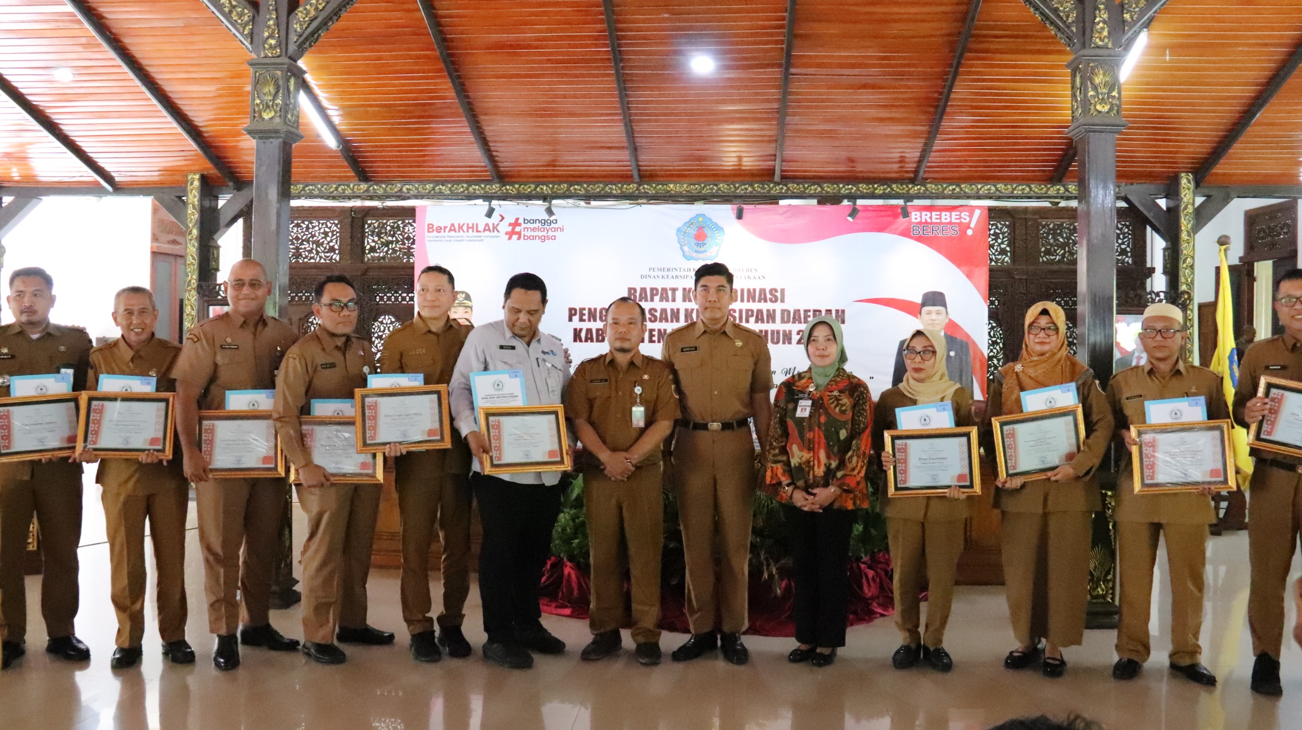 BREBES (JATENG), SUARAPANCASILA.ID – Pemerintah Kabupaten Brebes melalui Dinas Kearsipan dan Perpustakaan (Dinarpus) menggelar Rapat Koordinasi (Rakor) Pengawasan Kearsipan Daerah sekaligus memberikan penghargaan kepada 10 OPD terbaik dalam pengelolaan arsip tahun 2025. Kegiatan berlangsung di Pendopo Brebes, Selasa (4/11/2025).