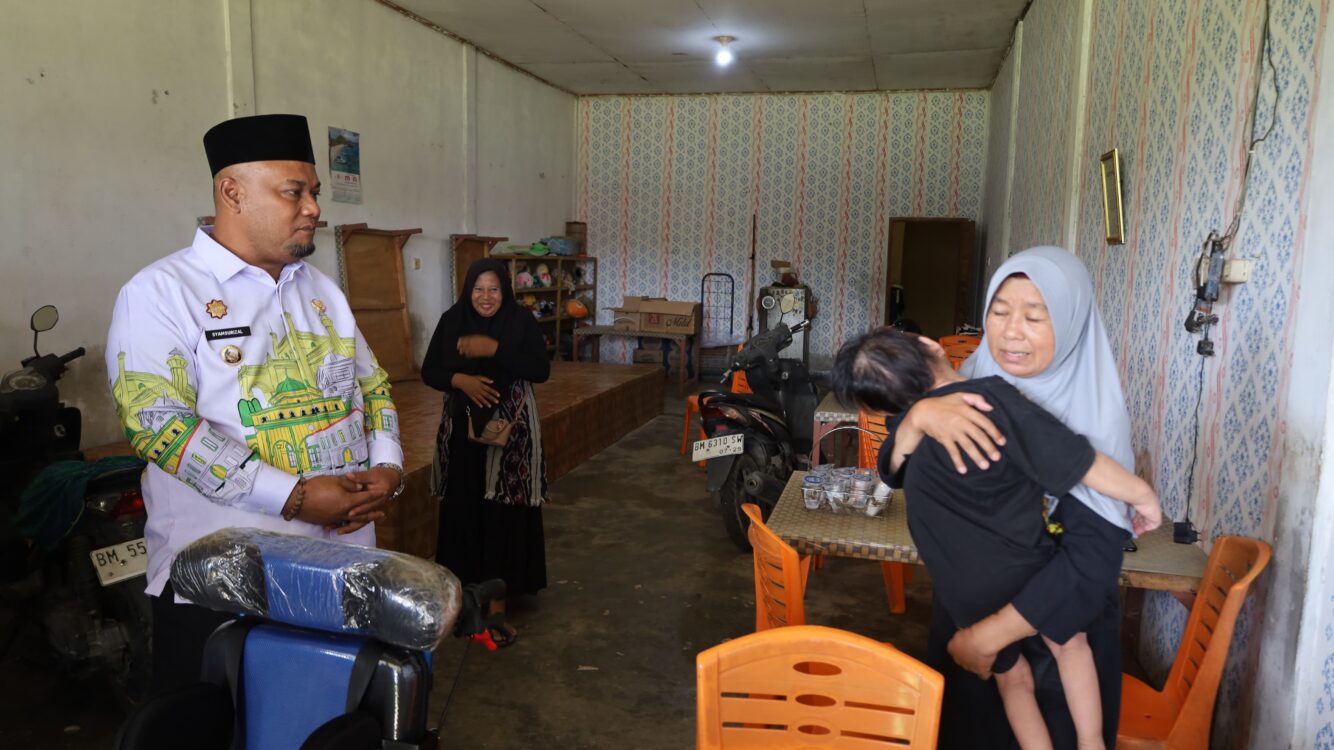 Suasana penyerahan bantuan berlangsung haru, Nurlaili, orang tua dari Ratna Sari (31), penyandang disabilitas penerima kursi roda, mengungkapkan rasa syukur atas perhatian dan bantuan yang diberikan oleh Pemerintah Kabupaten Siak.