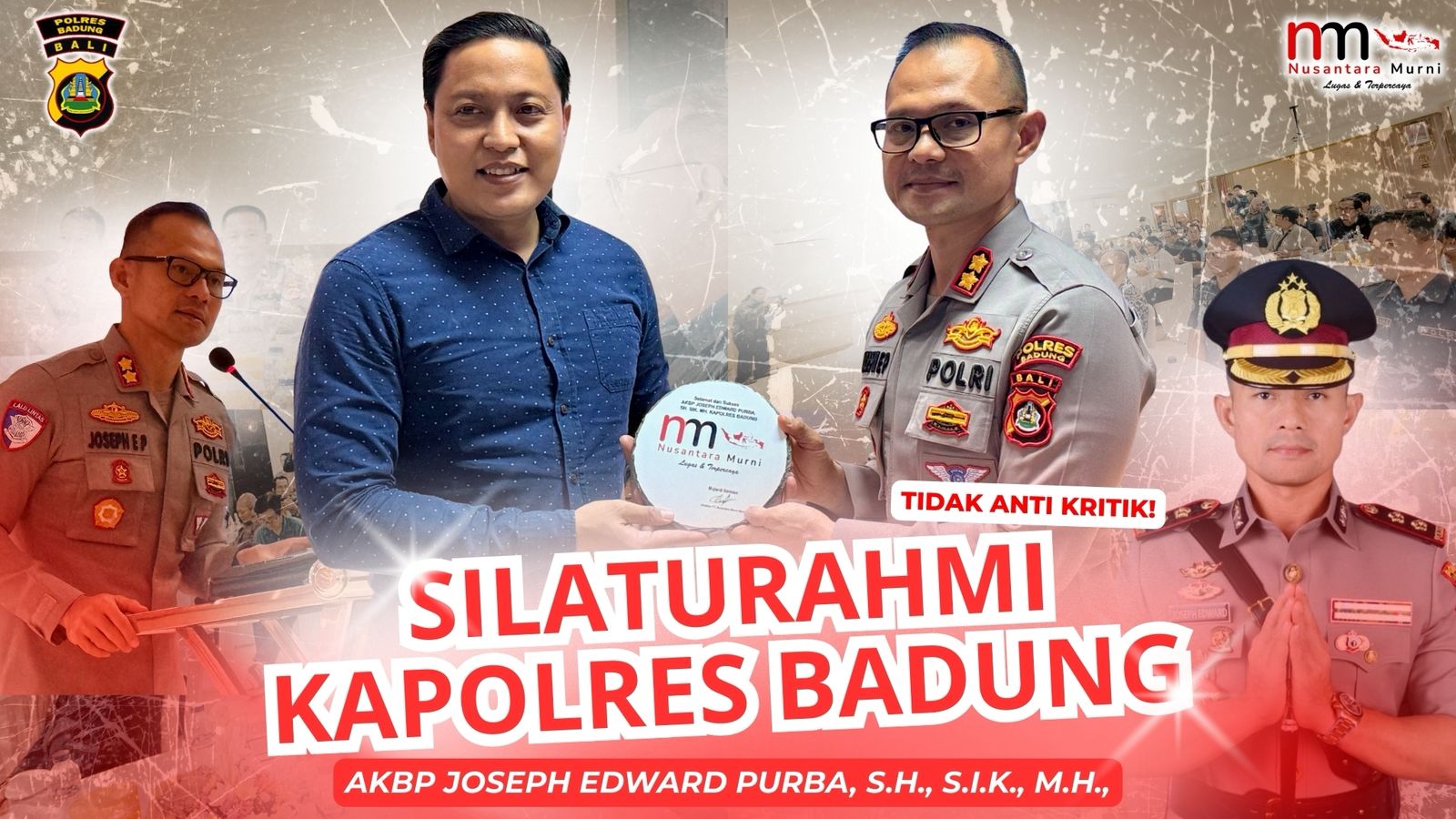 Sebagai penutup acara dan simbol kuatnya kemitraan, Pemimpin Redaksi Nusantara Murni, Mujiardi Santoso, menyerahkan souvenir khusus kepada Kapolres Badung sebagai tanda sinergitas yang harmonis antara pers dan kepolisian.