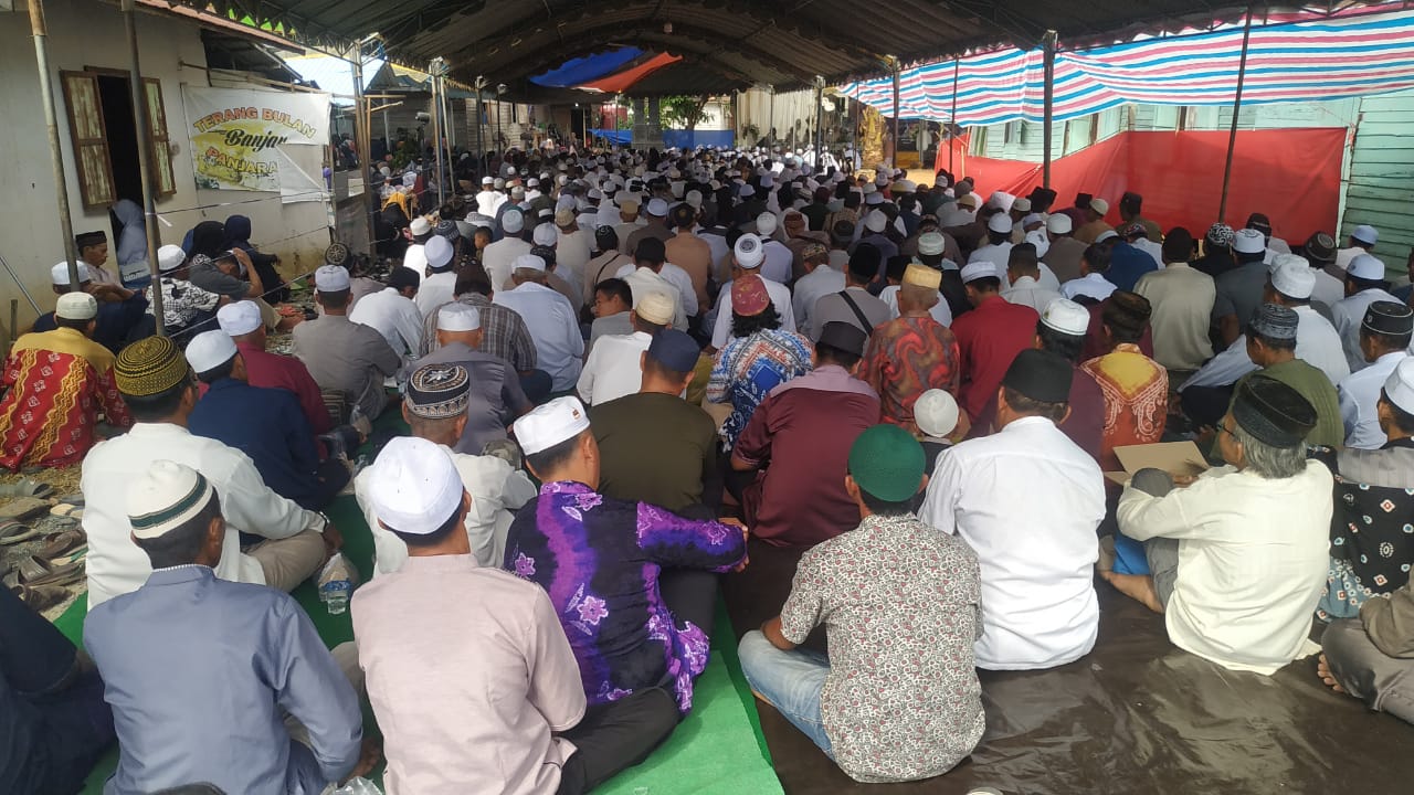 Dari sudut ruangan hingga ke teras, semangat antusiasme jama’ah Desa Panjaratan terpancar jelas karena Peringatan Isra Mi’raj kali ini juga sekaligus memperingati haul ke 19 Guru Sekumpul. Mereka merespons dengan penghormatan dan kekaguman yang tulus, menyuarakan rasa syukur dan kekaguman atas momen suci ini.