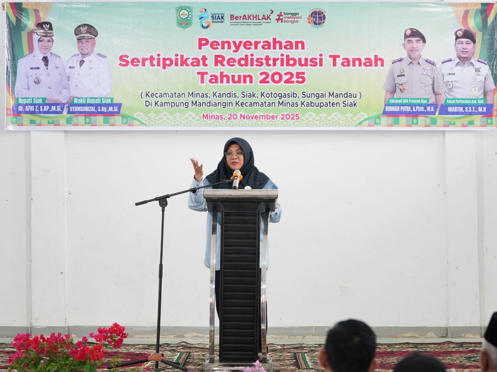 Kepala Kantor Pertanahan (Ka. Kantan) Kabupaten Siak, Martin, SST., M.H., menyampaikan bahwa penyerahan TORA kali ini menjadi penyerahan pertama di Provinsi Riau pada 2025.