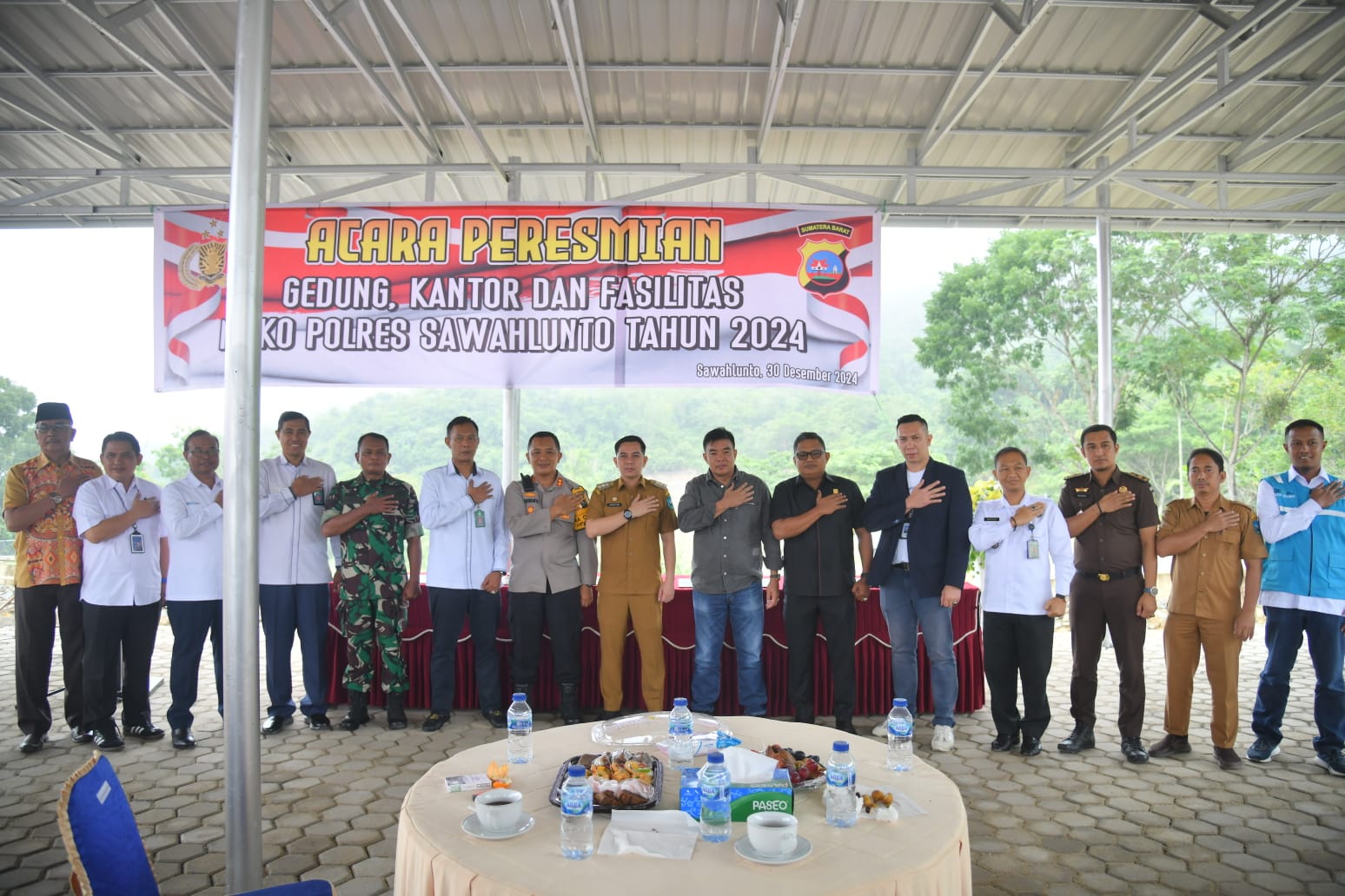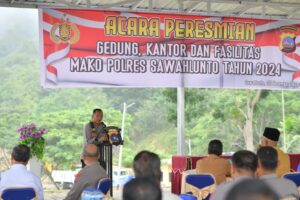 SAWAHLUNTO (SUMBAR), SUARA PANCASILA.ID -Kapolres Sawahlunto AKBP Purwanto Hari Subekti, S.Sos menyampaikan ucapan terimakasih kepada Pemko dan unsur Forkopimda, Stakeholder, Ninik Mamak, Tokoh Masyarakat serta Pengusaha Kota Sawahlunto ketika menyampaikan sambutan pada acara peresmian Gedung, Kantor dan Fasilitas Mapolres Sawahlunto.